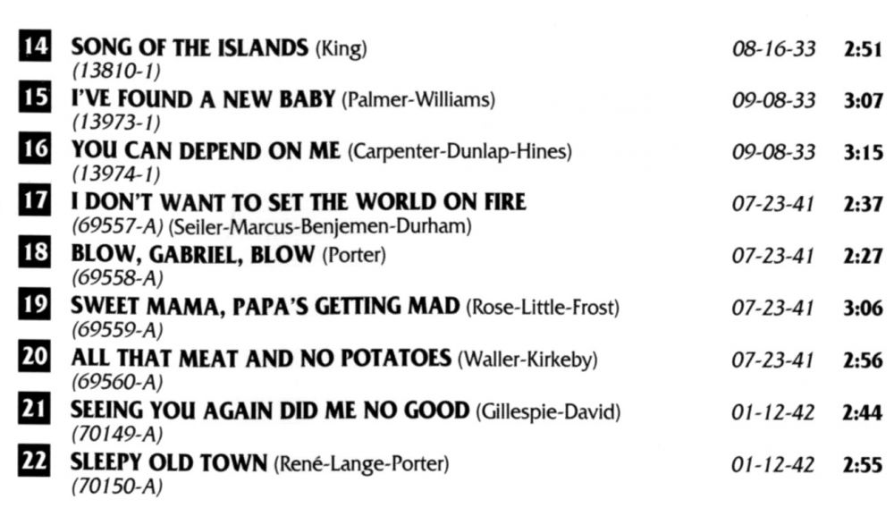 Während ihrer USA-Abwesenheit veröffentlichte Vocalion am 01. November 1933 “I've Found A New Baby“ und “You Can Depend On Me“.
