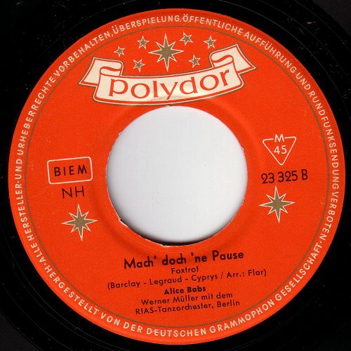 u.a. 8834/20940 "Lollipop"-1958 & Die HANSEN-BOYS, 21140 "Du, Nur Du, Du, Du Allein (To Know Him Is To Love Him)"-1959 und Aufnahmen mit PAUL KUHN wie 41126 "Hand-Jive"-1959, 21216 "Fräulein Pardon"-1959, SVEND ASMUSSEN u. ULRIK NEUMANN 21286 "Zwei In Einer Großen Stadt"-1959,