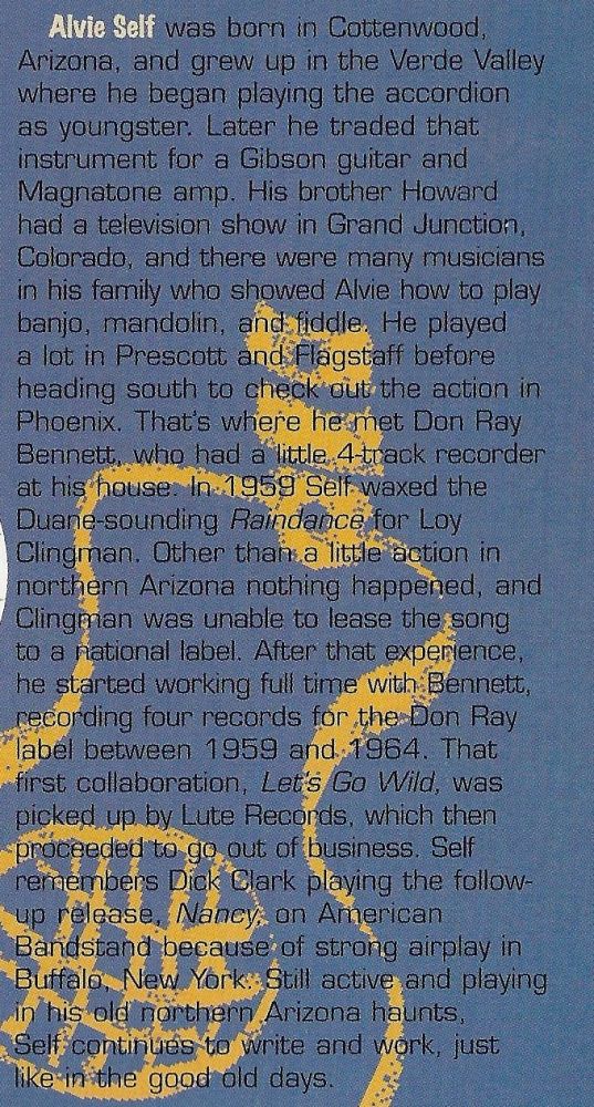 Played Accordion in his youth, then took up playing guitar. Playing a solid-body Les Paul guitar and using a Magnatone Amp. His first recoording on the FORD label, Phoenix (Ford 1015) "Rain Dance", next the popular "Nancy" backed by "Let's Go Wild" now a legendary Rockabilly record.(DonRAY DR-5963)