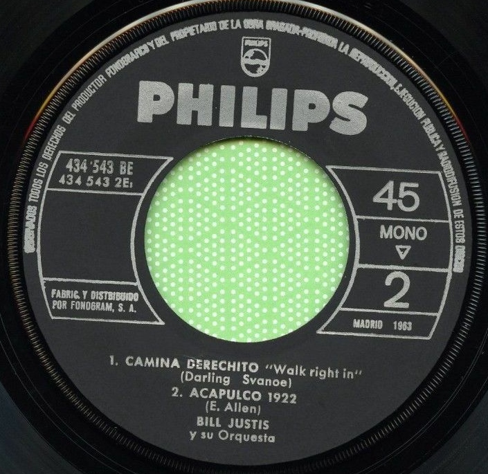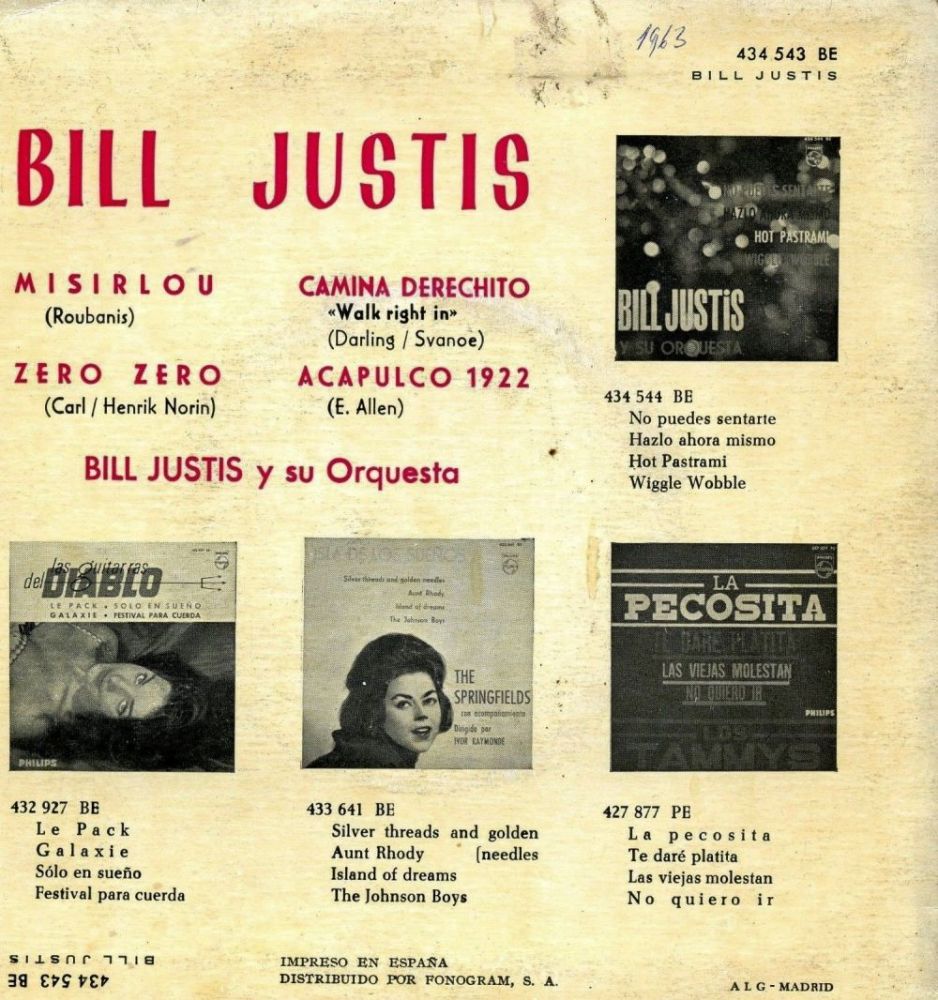 10 63….S-1851....BILL JUSTIS Arranged by Bill Justis..Sunday In Madrid (YW1-29798)/Satin And Velvet (YW1-29799)