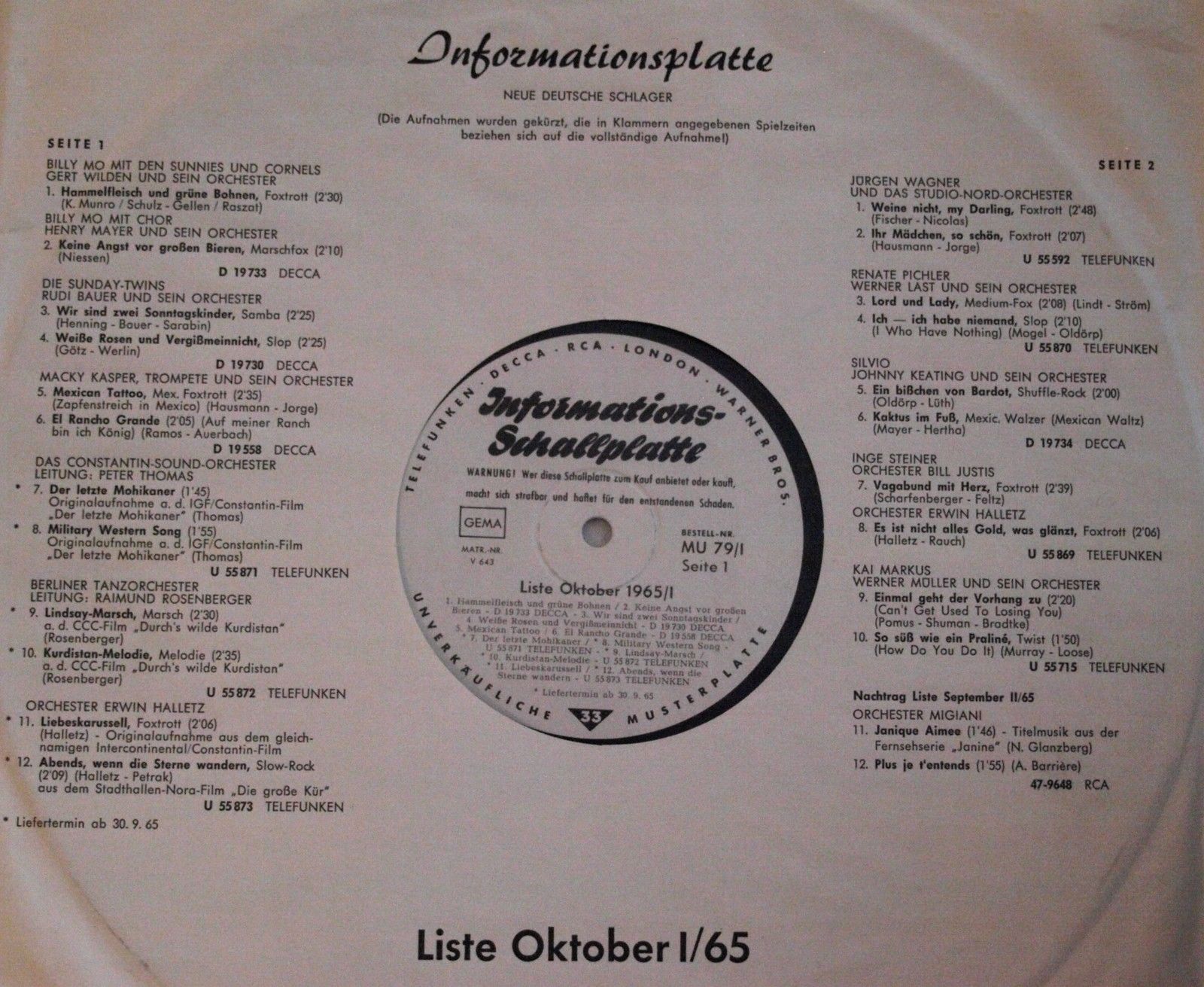 Manker, Gitarrist in den Sun-Studios!), Cecil Moore & Diamonds-Backs, Ernie Fields, Enoch Light, The Curios, The G-Men, Ted Heath, The Ventures, The Shadows, Ken Mackintosh (UK), Bill Black´s Combo, Ace Cannon, Jan Davis, Bill Smith Combo, Muvva Guitar Hubbard und Shady Wall.