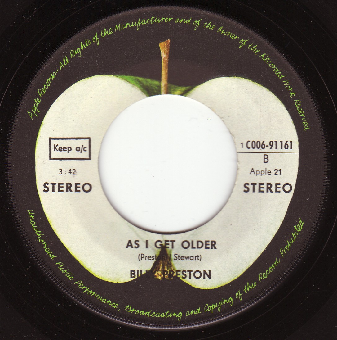 The second single from Billy's sucessful debut Apple album. The A-side was co written by Billy and another future Apple recording artist Doris Troy. While the B-side was written soley by Preston. Produce by George Harrison, who expressed in the Anthology shows that when Billy arrived at the Let it be sessions it helped to smooth things over between the Beatles for a short while. Issued in a plain Apple sleeve.