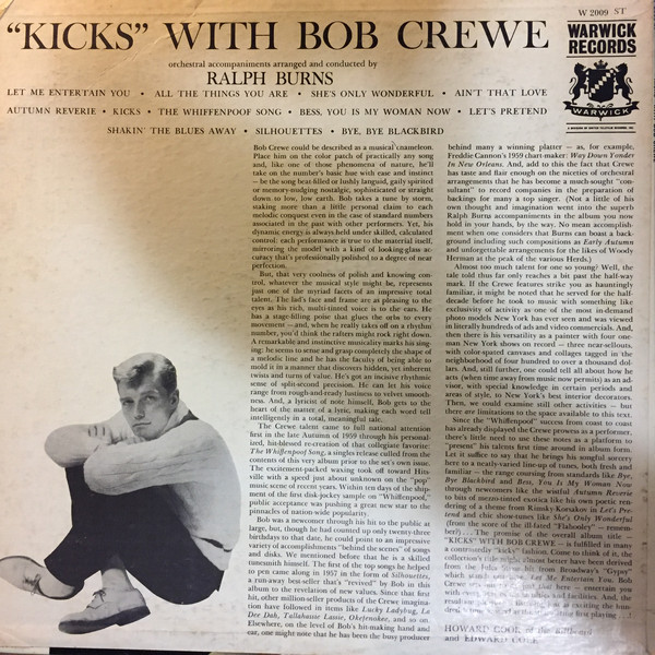 Der Songwriter, Tänzer, Sänger, Manager und Schallplattenproduzent Bob Crewe wurde am 12. November 1931 in Newark, New Jersey, als Stanley Robert Crewe geboren. Aufmerksame Plattensammler kennen den Namen sicher von Singles mit Freddie Cannon, Danny & The Juniors und vielen anderen Stars, fast immer gemeinsam mit Frank Slay