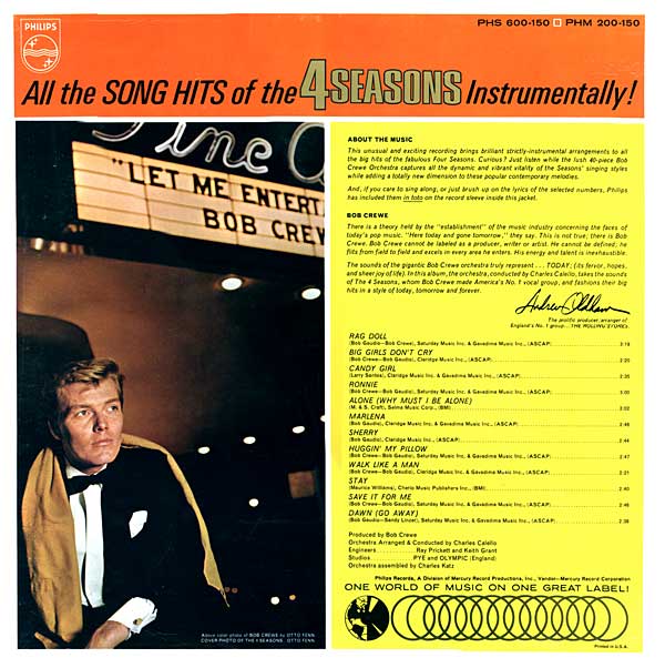 Auch Frank Slay hatte eigene Singles, aber Bob Crewe war neben seiner Tätigkeit als Songwriter etc. fast schon ein richtiger Plattenstar.
