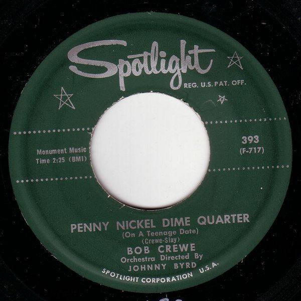 01 56....393....BOB CREWE Orchestra Directed By JOHNNY BYRD..Penny Nickel Dime Quarter (F 717)/How Long (F 718)