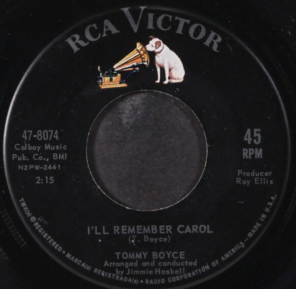 08 62....47-8074....TOMMY BOYCE Arranged and conducted by Jimmie Haskell..I'll Remember Carol (N2PW-2441)/TOMMY BOYCE..Too Late For Tears (M2PW-4781)