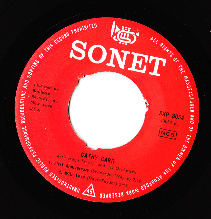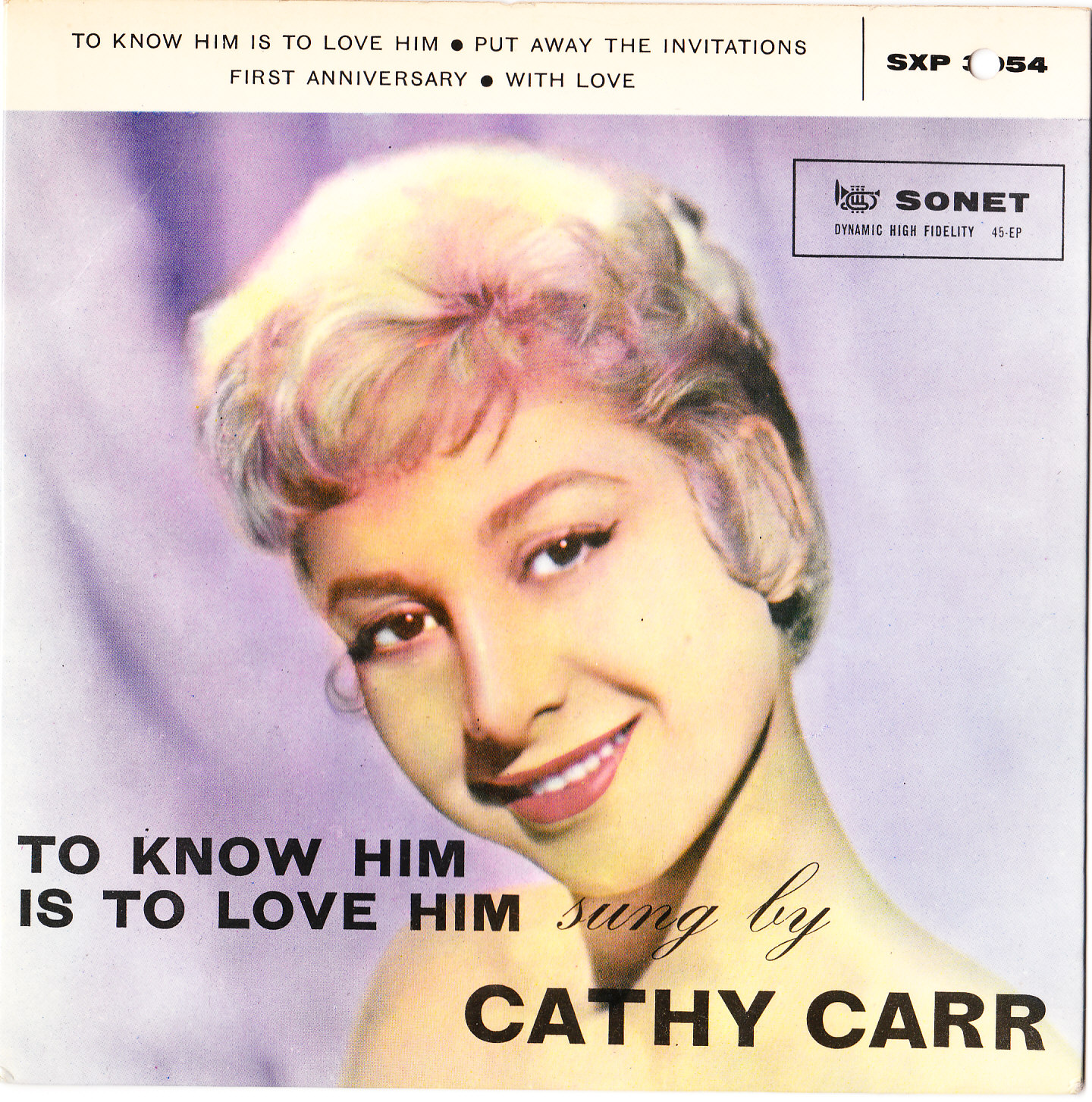 hallo forum eine wie ich meine sehr rare ep die sich schon 40 oder mehr jahre in meiner sammlung befindet ist die sonet ep cathy carr auf sonet sxp 3054 mit den titeln to know him is to love him,put away the invitations,first anniversary,with love viel vergnügen und keep rockin' albert