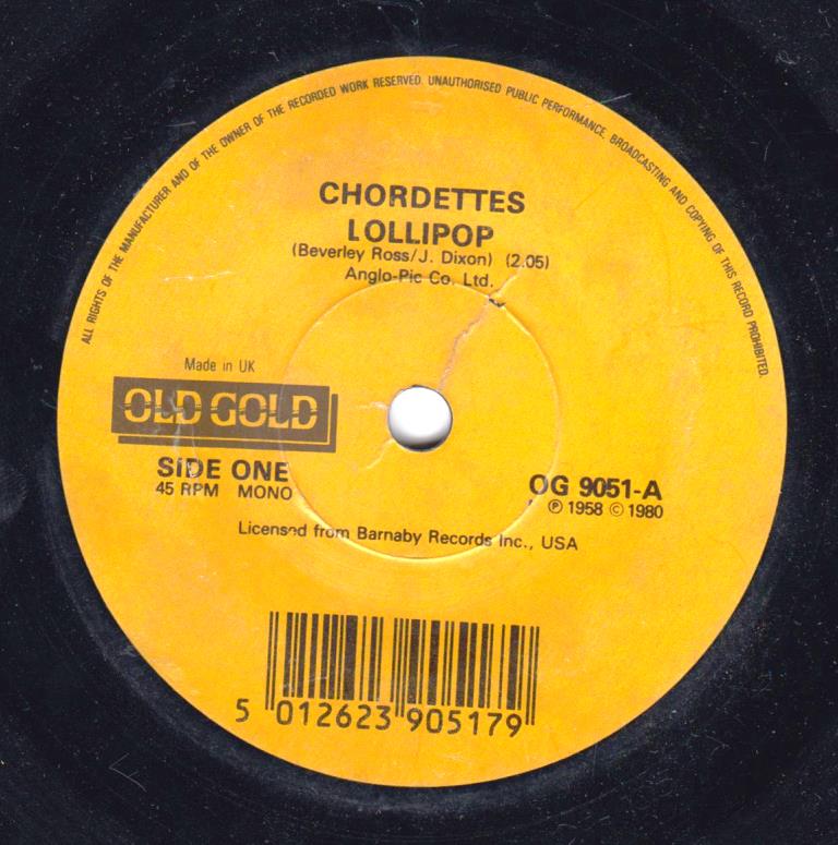 02 58....1345....THE CHORDETTES Orchestra Conducted by Archie Bleyer..Lollipop (J7-OW-1888)/Baby Come-a Back-a (J7-OW-1889) (Delta-Nr.: 20314/15)