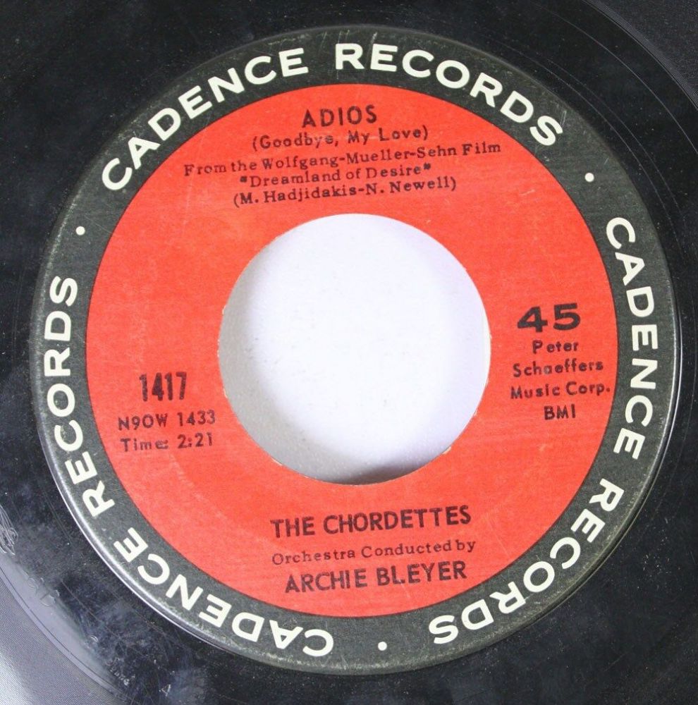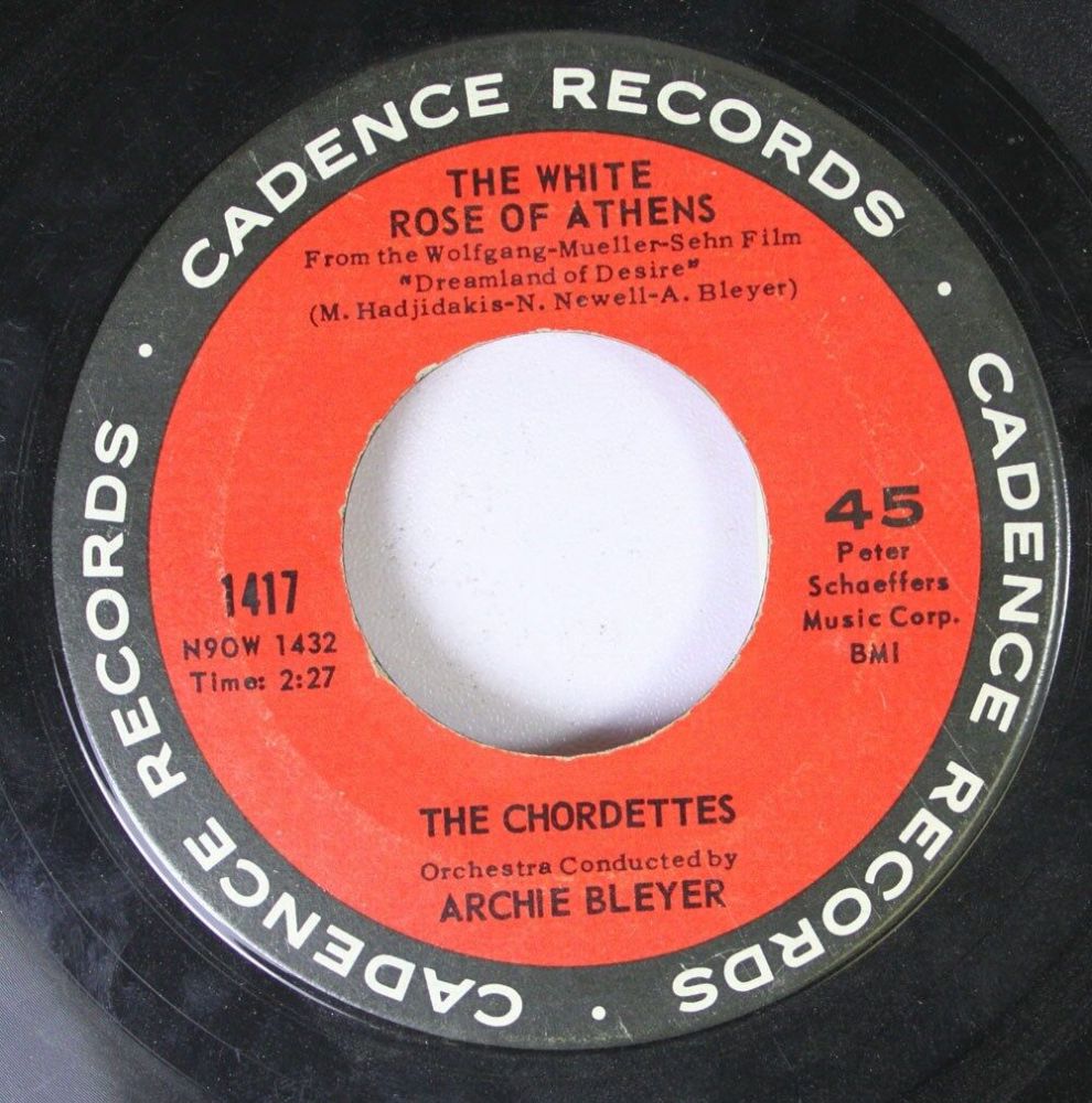 03 62....1417....THE CHORDETTES Orchestra Conducted by ARCHIE BLEYER..The White Rose Of Athens (N90W 1432)/Adios (Goodbye, My Love) (N90W 1433)