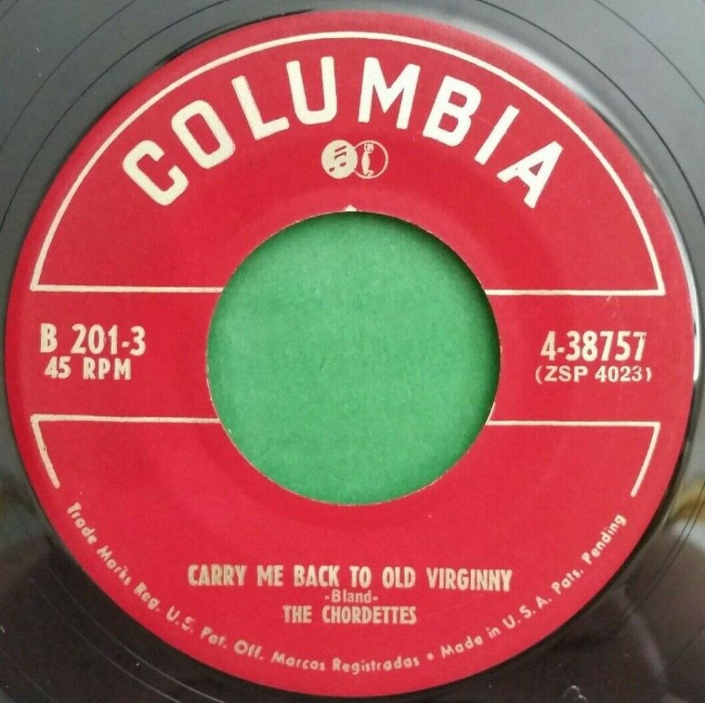 04 50 12 50....4-38757 - B-201-3….THE CHORDETTES..Carry Me Back To Old Virginny (ZSP 4023)/-4….Ballin' The Jack (ZSP 4024)
