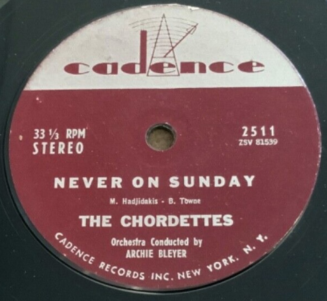 05 61....1402....THE CHORDETTES Orchestra Conducted by Archie Bleyer..Never On Sunday (M9OW-7255)/Faraway Star (M9OW-7256)