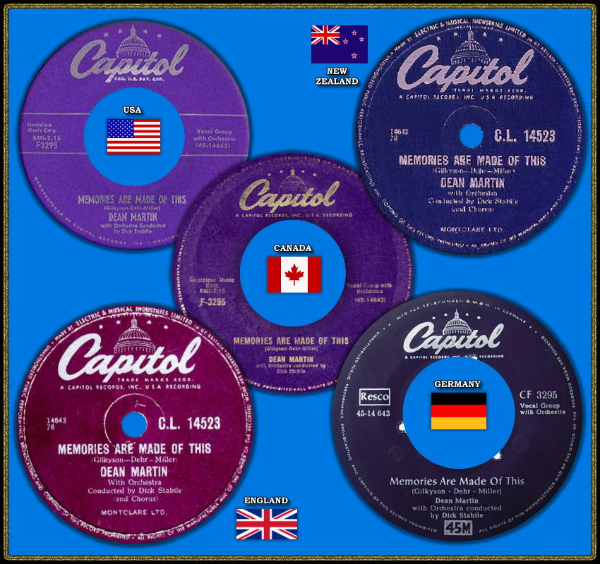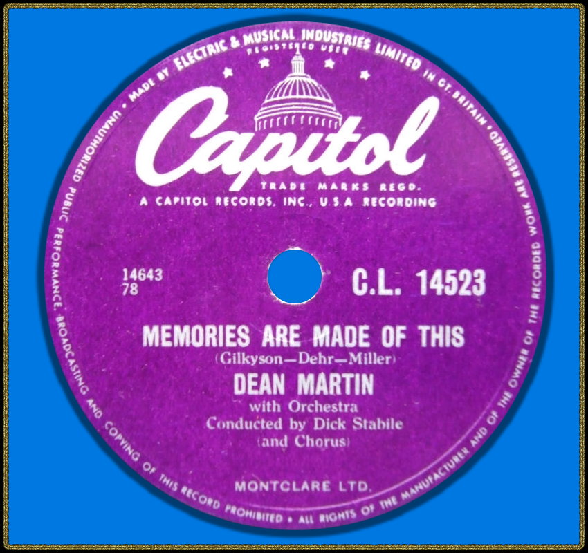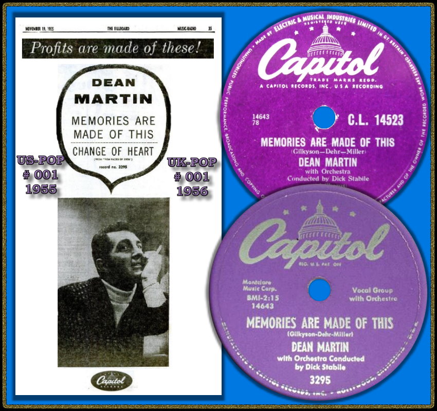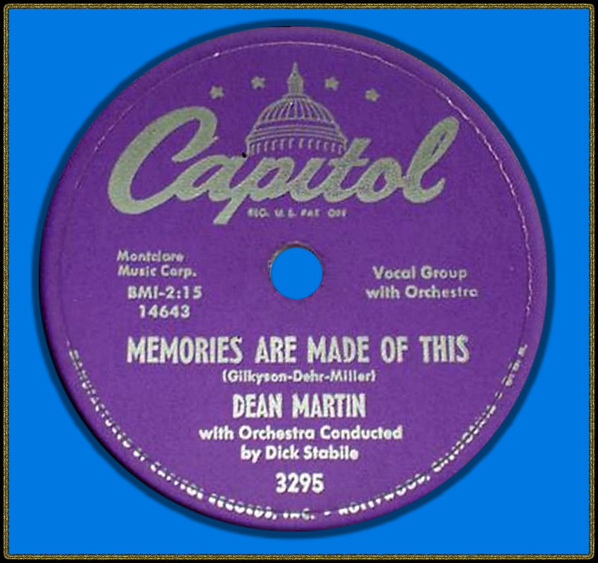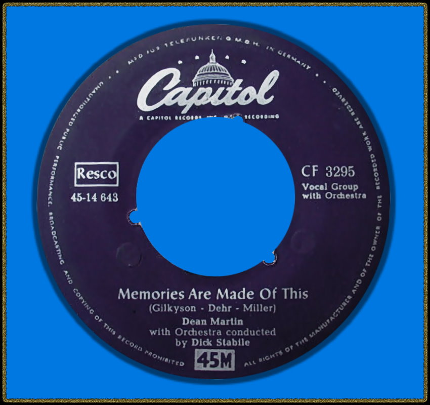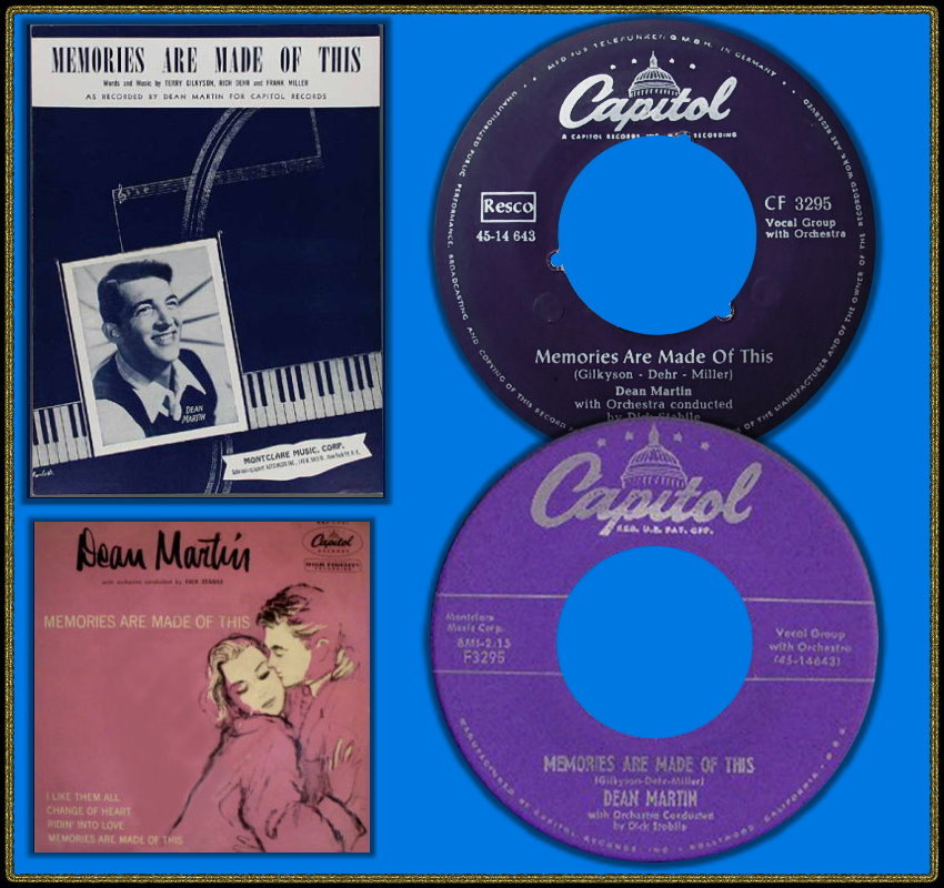 Im April 1955 erfolgten Duett-Aufnahmen mit der Französin Line Renaud, bevor dann im Oktober 1955 Dean Martin’s erster # 1-Hit “Memories Are Made Of This“ zusammen mit dem Background-Gesang der Easyriders produziert wurde. Dieses Folk-Trio stand auch bei Capitol unter Vertrag und ihre Mitglieder Richard James Dehr, Hamilton Terry Gilkyson und Frank Miller zeichneten für die Komposition des Titels verantwortlich.