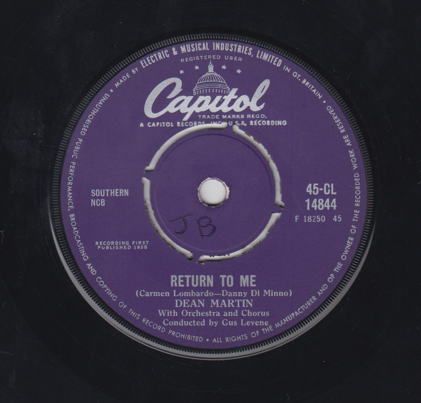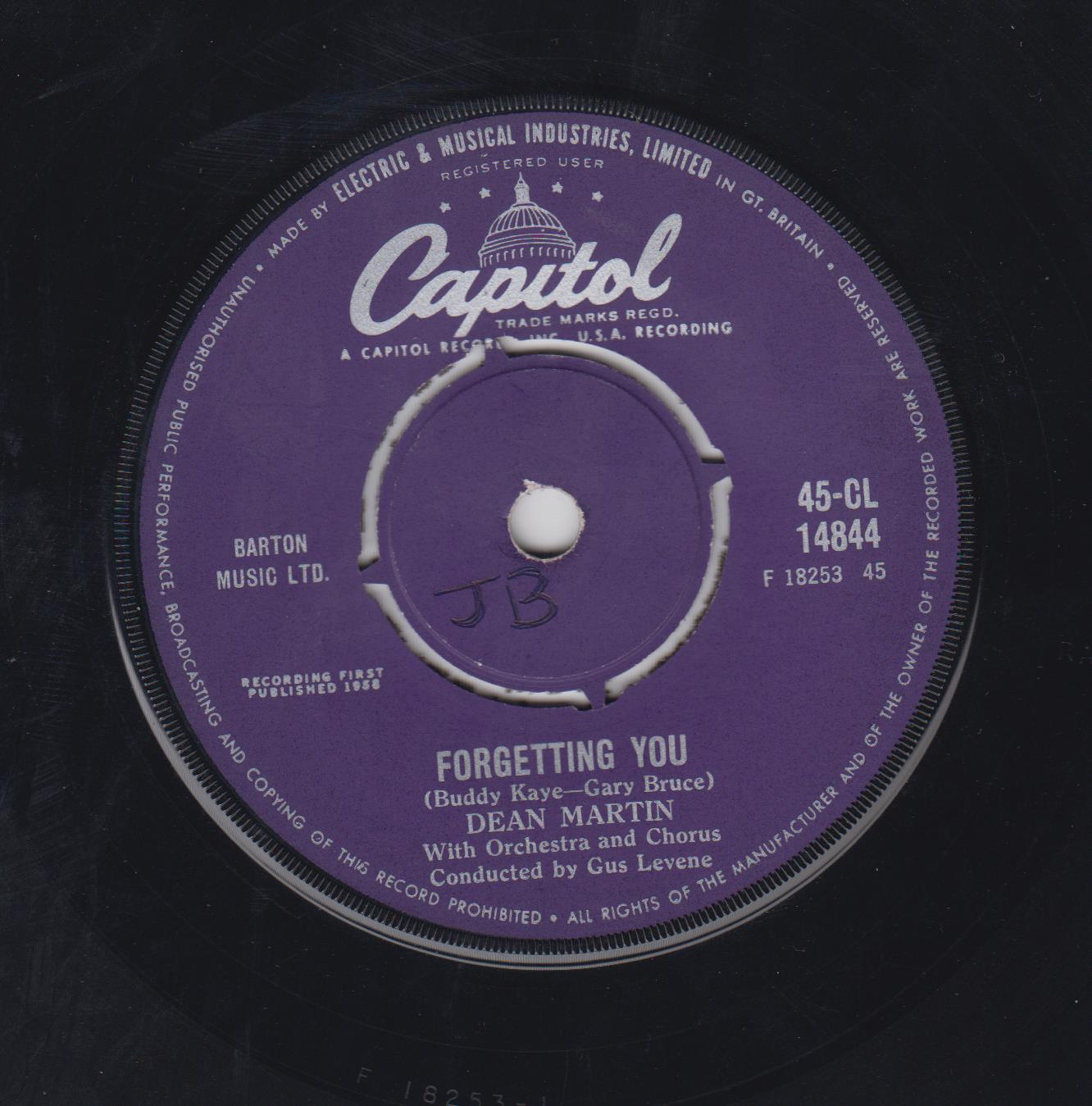 02 58....F3894....DEAN MARTIN with Orchestra and Chorus Conducted by Gus Levene..Forgetting You (45-18253)/Return To Me (45-18250)