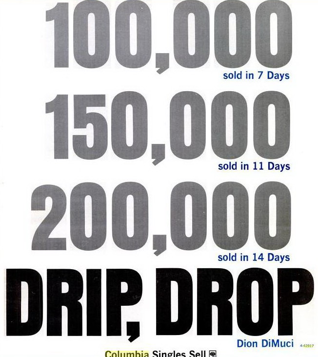 Also die Single "Drip drop" von 1963 lief unter Dion, solo (Columbia 42917)