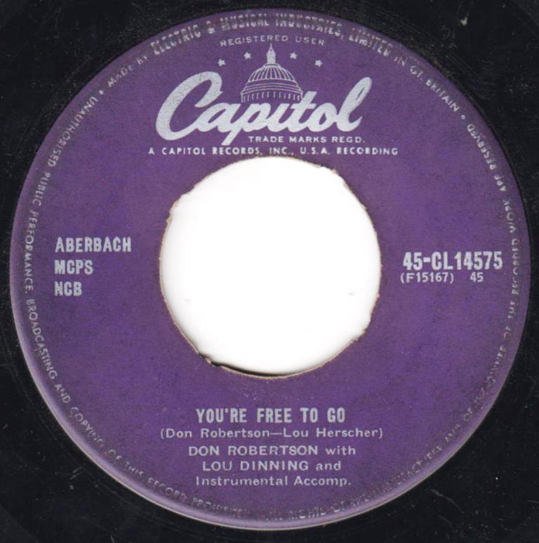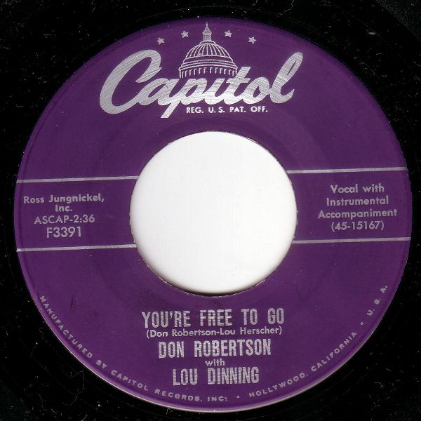 04 56....F3391....DON ROBERTSON..The Happy Whistler (45-15166)/DON ROBERTSON with LOU DINNING..You're Free To Go (45 15167)