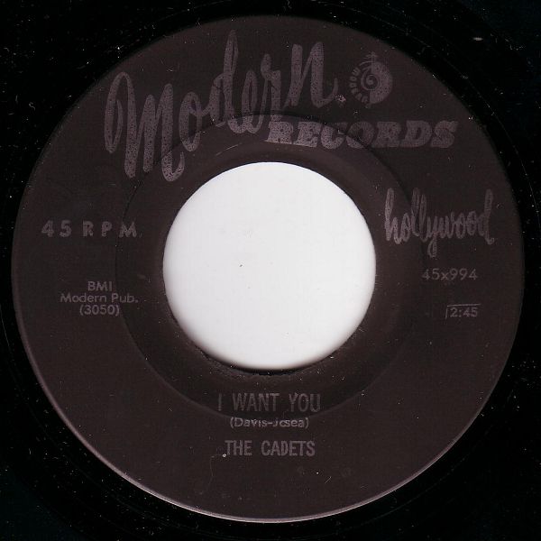 Die Schallplatten von The Cadets erschienen für das Modern-Label bis 1957, teilweise auch als Aaron Collins and The Cadets (Modern 1019) oder Will Jones and The Cadets (Modern 1024). Die Aufnahmen erfogten in den Modern Studios am 9317 West Washington Boulevard in Culver City, California. 1960 tauchten The Cadets auf den kleinen Label von Jan-Jar und Sherwood 211 (Bennie Bunn & The Cadets) mit jeweils einer Single letztmalig auf.