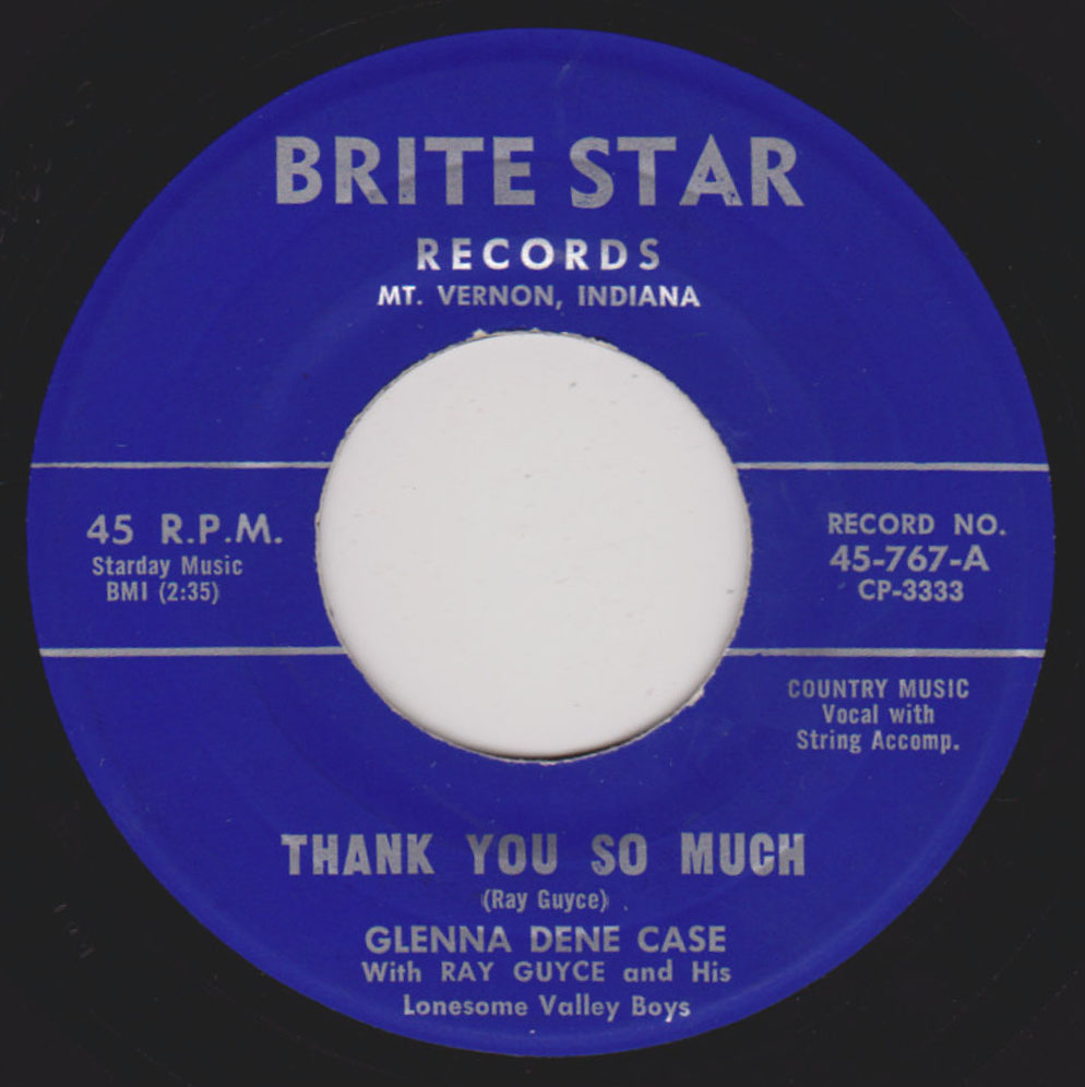 04 60….45-767-A….GLENNA DENE CASE with RAY GUYCE and His Lonesome Valley Boys..Thank You So Much (CP-3333)/-B….Broken Hearted (CP-3334)