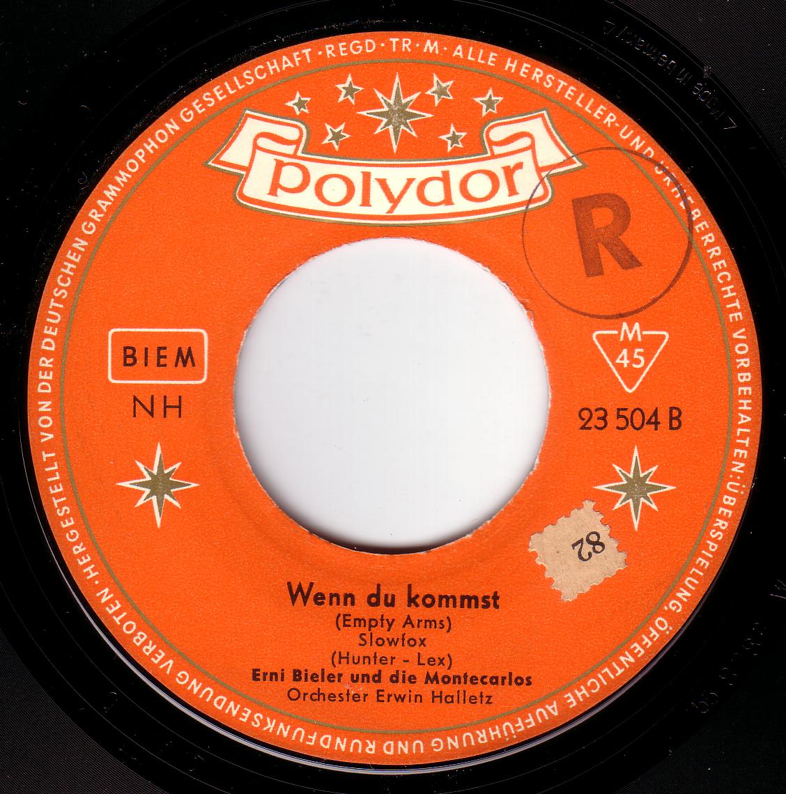 10 57...23 504 B...Ernie Bieler und die Montecarlos Orchester Erwin Halletz Wenn du kommst (Empty Arms)