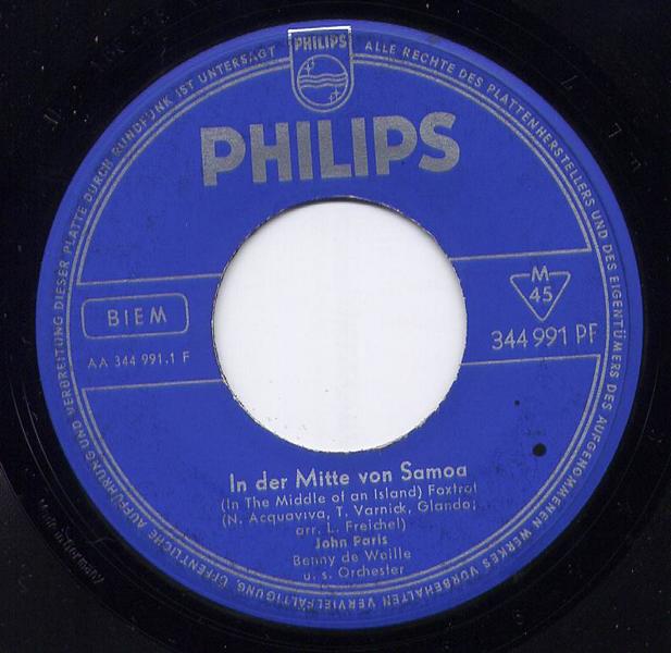 Schallplatten seit 1954 für Philips (u.a. P 84085 "Carnevalito", 344991 PF "In Der Mitte Von Samoa (In The Middle Of An Island)", 345104 "Take It Easy"/"Zwei Gold’ne Ringe (Put A Ring On My Finger)"-1958), Orchesterbegleitungen durch WILLY BERKING u. ALFRED HAUSE,