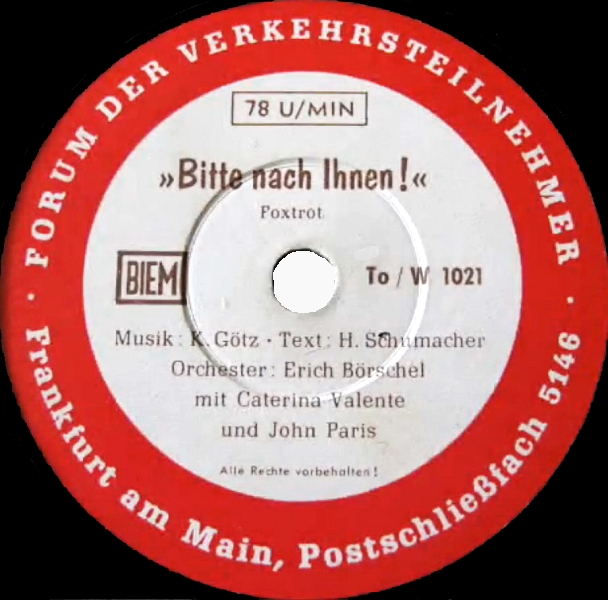1954 kommt der vielsprachig aktive Interpret nach Frankfurt/Main, Hörfunk-Moderator beim HR (spielt ausländische Spezialitäten),