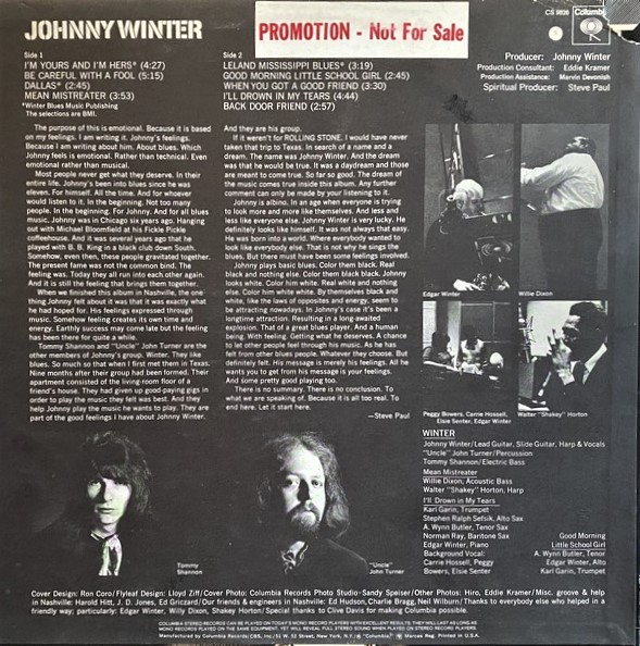 Nach meinen Informationen - ich hoffe sie stimmen - gilt als Johnny Winter's erste "echte" Bluesplatte " Rollin' And Tumblin' "/" Mean Town Blues " aus dem Jahre 1968 mit Interpretenname "WINTER" auf SONOBEAT R-s107 A/B.