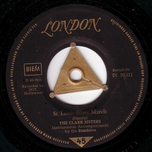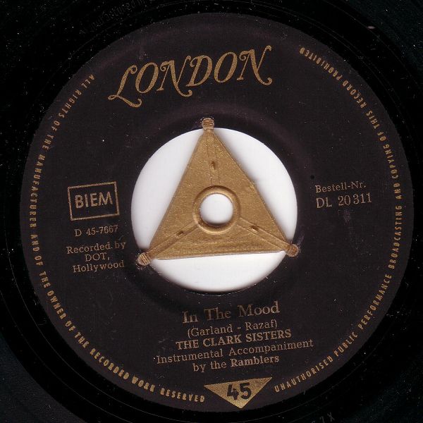 03 60....DL 20 311....SDL 20 311....THE CLARK SISTERS Instrumental Accompaniment by the Ramblers..In The Mood/St. Louis Blues March (DOT MONO: LP 3137 STEREO: LP 25137)