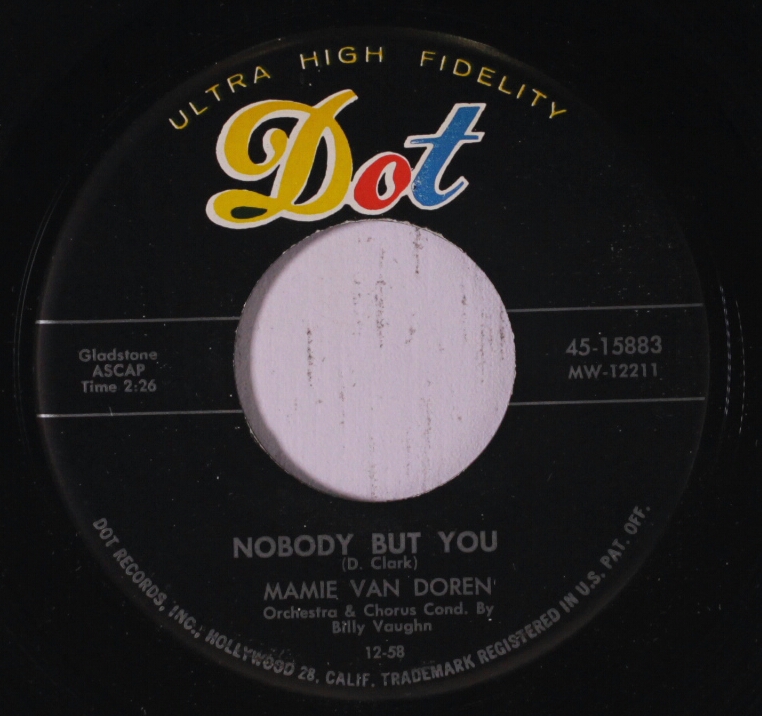 DOT 12 58....45-15883....MAMIE VAN DORENOrchestra & Chorus Cond. By Billy Vaughn..Nobody But You (MW-12211)/MAMIE VAN DORENOrchestra Cond. By Billy Vaughn..A Lifetime Of Love (MW-12212)