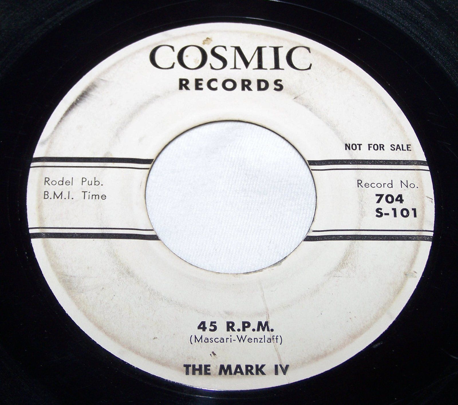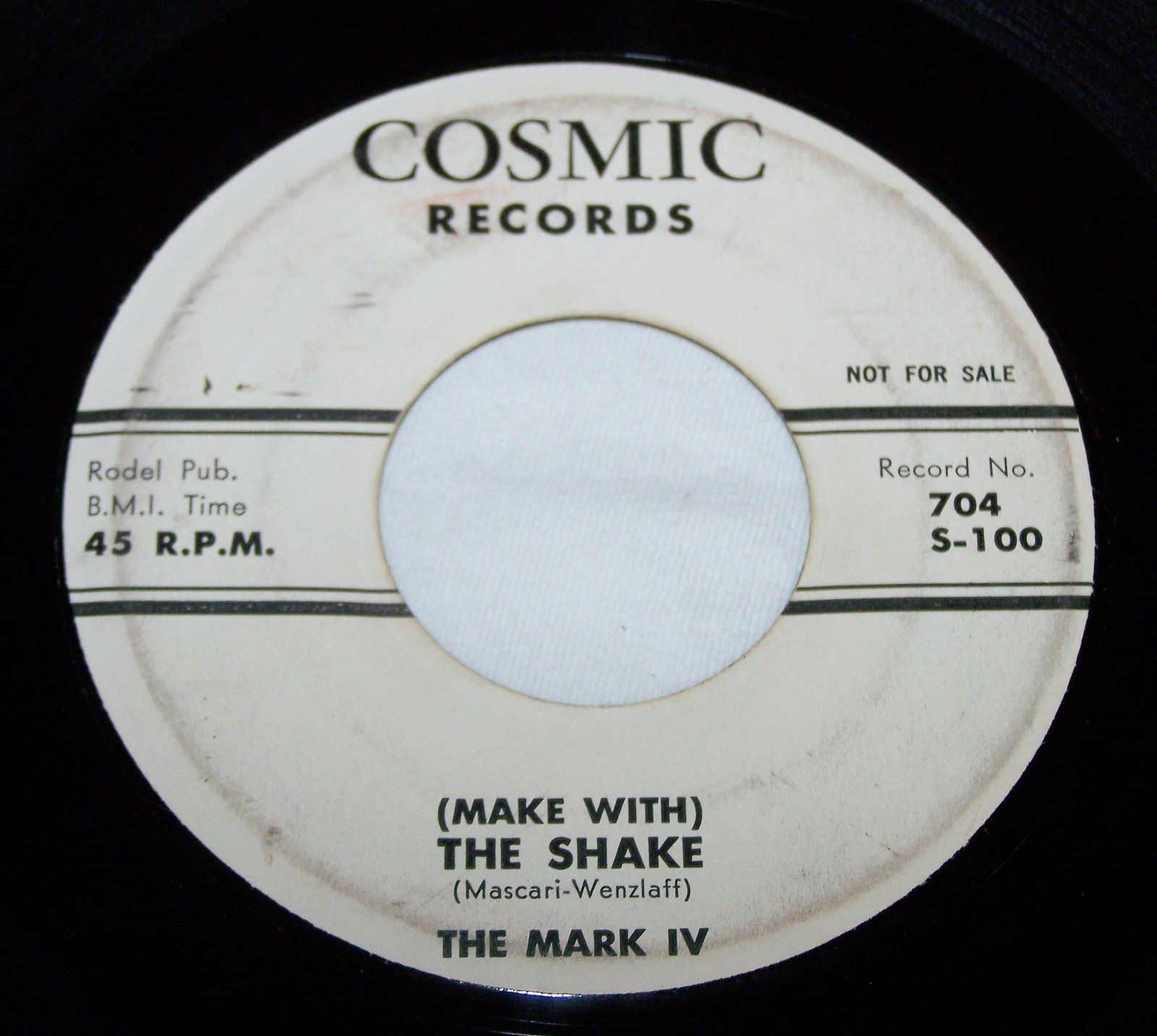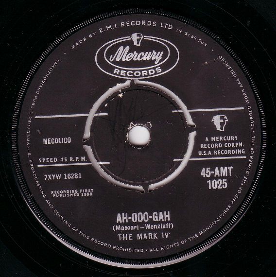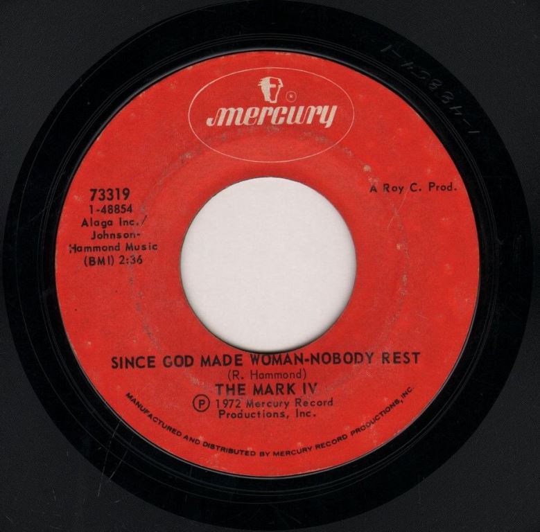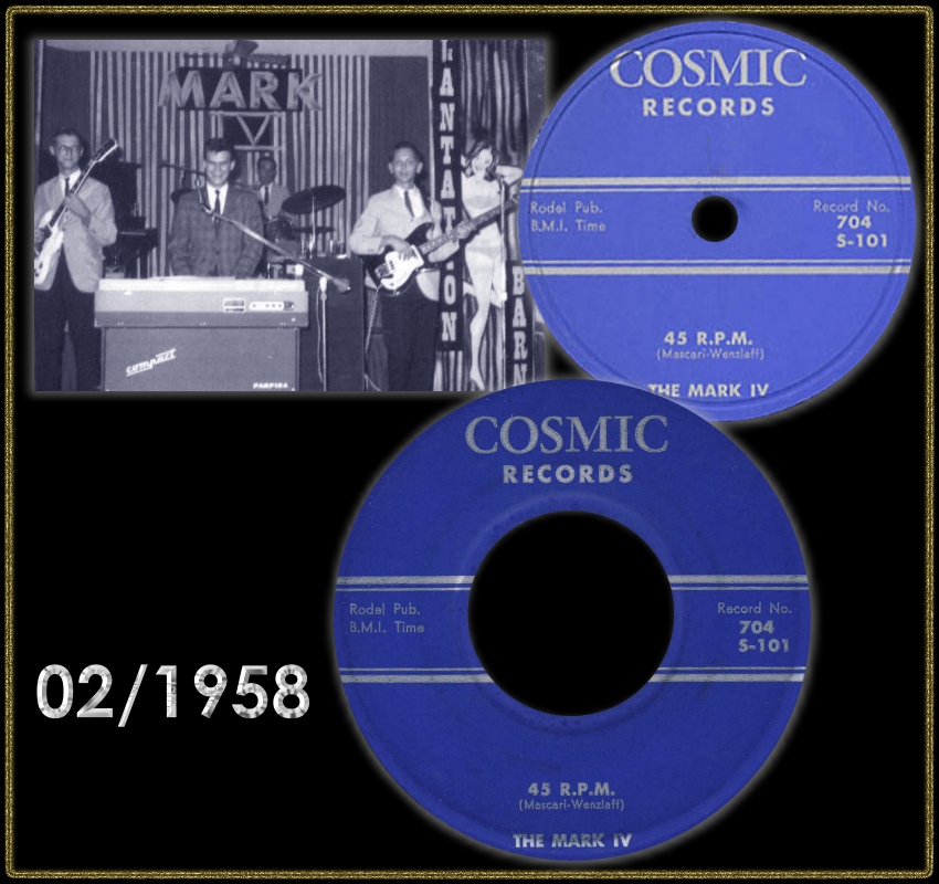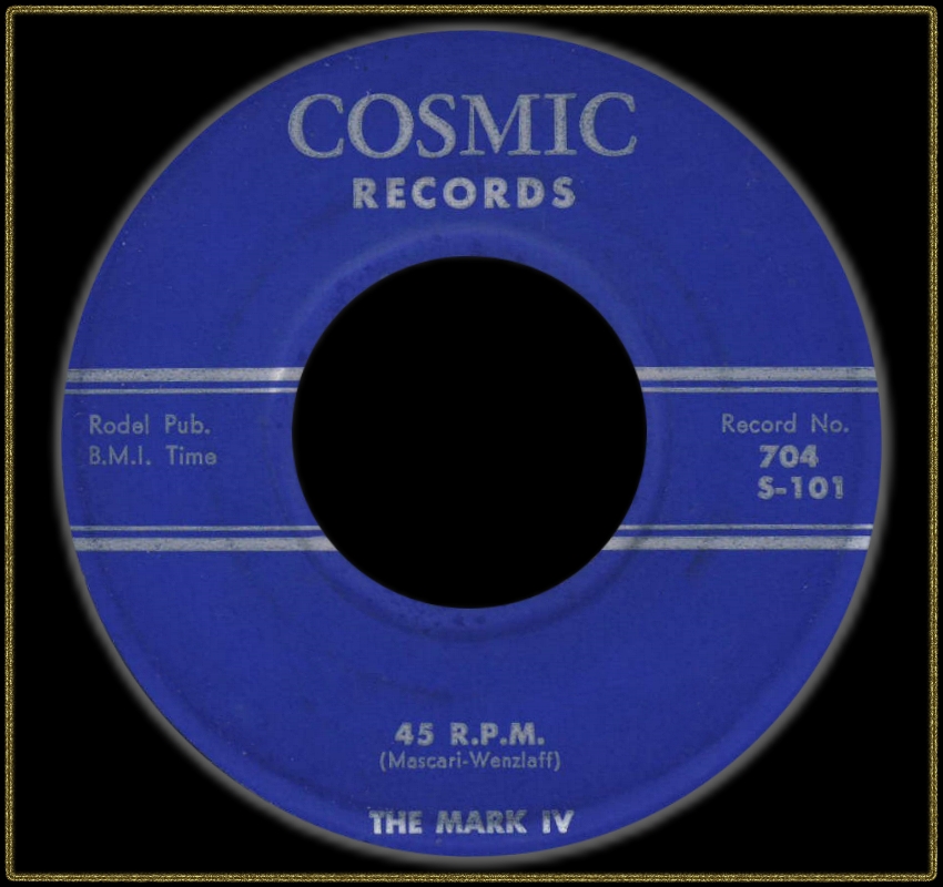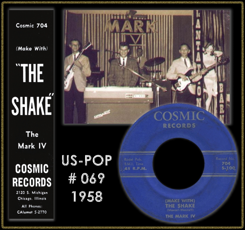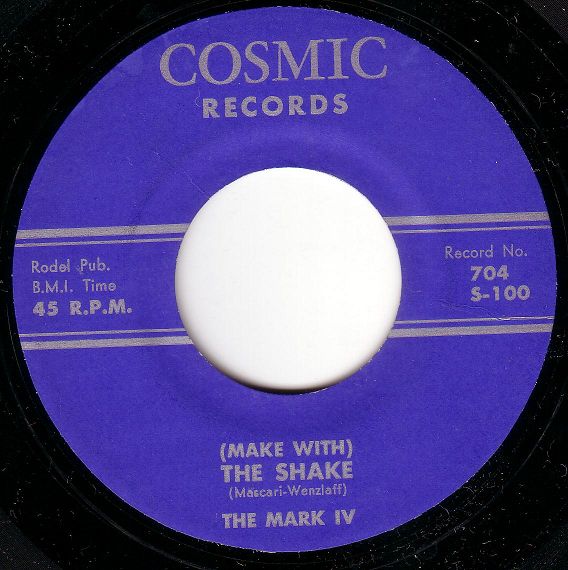 "The Mark IV" war eine Gruppe aus Chicago die als "The Rhythm Maker's" begann, sich dann auf "The Mark V" umbenannte und nach Abgang eines Mannes zu ihrem endgültigen Namen kam. Für die Rocknroll-Sammler ist ihre COSMIC-Single "(Make With) The Shake"/"45 R.P.M." ein Muß.