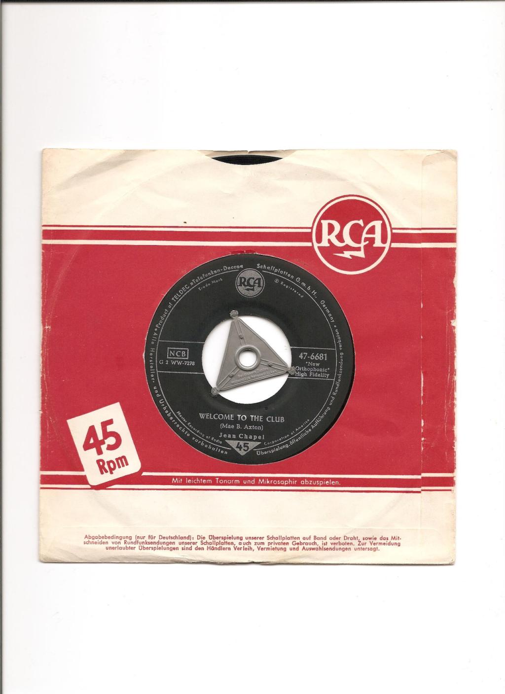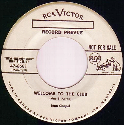 10 56....47-6681....JEAN CHAPEL..Welcome To The Club (G2WW 7278)/I Won't Be Rockin' Tonight (G2WW 7279) (
