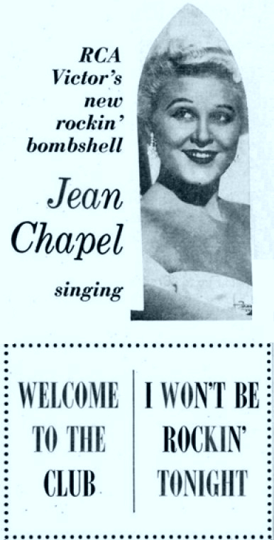 07 56....244....JEAN CHAPEL..Welcome To The Club (U 196)/I Won't Be Rockin' Tonight (U 197) (