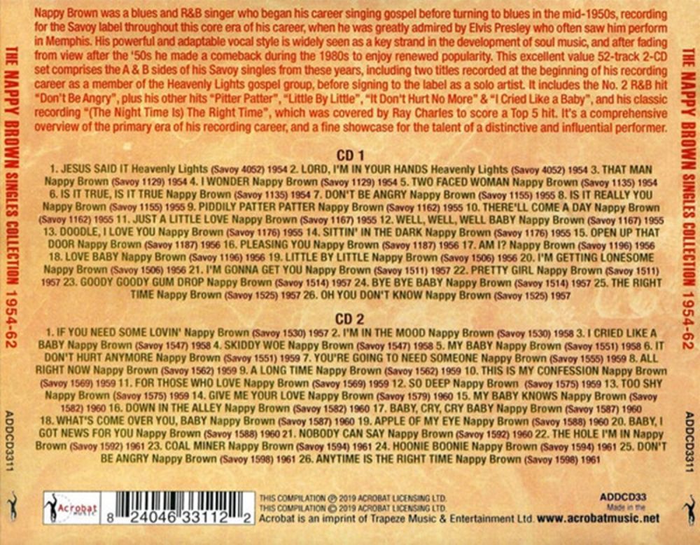 At this point, Napoleon Brown left the group and was replaced by someone remembered only as Clarence. The group continued recording for Jubilee, but now did some secular tunes under the name the Sultans. The Sultans were Clyde Wright, Jimmy Gorham, Melvin Coldten, Junius Parker and Clarence ???. Clyde Wright wrote “Don’t Be Angry.” Clyde went into the army and was not aware the Sultans’ records were ever released until years later when Charlie Horner asked him about the records. The group must have been rehearsing “Don’t Be Angry” before Nappy Brown left, because he speeded the tune up and recorded it for Savoy in 1955, resulting in a hit record (#2 on R&B Charts, #25 on Pop Charts). When Nappy Brown’s version came out it did not credit Clyde Wright as writer. Clyde considered suing but didn’t because Nappy was his cousin.