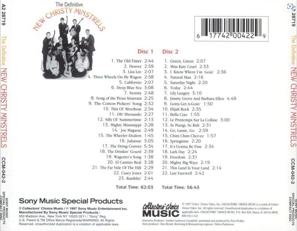 Green Green; Saturday Night; Today; Kisses Sweeter Than Wine; Ramblin'; Chim Chim Cheree; Sill Ol' Summertime; Flowers On The Wall; Wimoweh (The Lion Sleeps Tonight); Blowin' In The Wind; This Land Is Your Land - 96