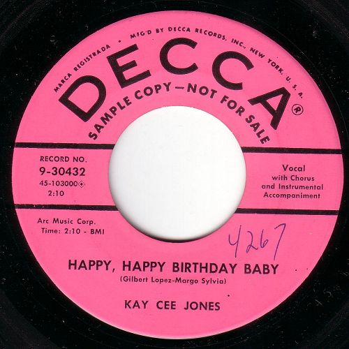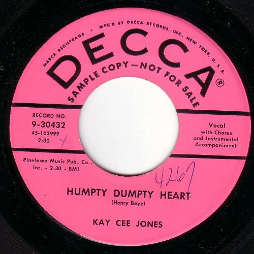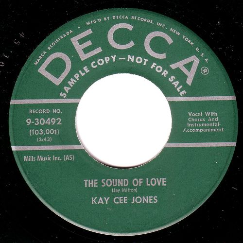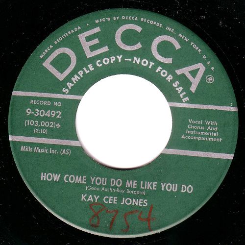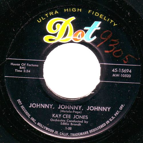 Kay Cee Jones: auch hier brauche ich Nachhilfe. Mir sind zwei Country-Rock'n Roll Singles aus 1956 von der Dame bekannt (auf "DOT" und "AMERICAN", siehe Scan). Auf "That'll flat dig it" Nr. 5 (Bear-Family Records) ist sie mit "Johnny, Johnny, Johnny" vertreten.