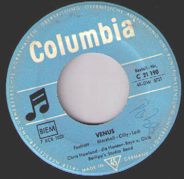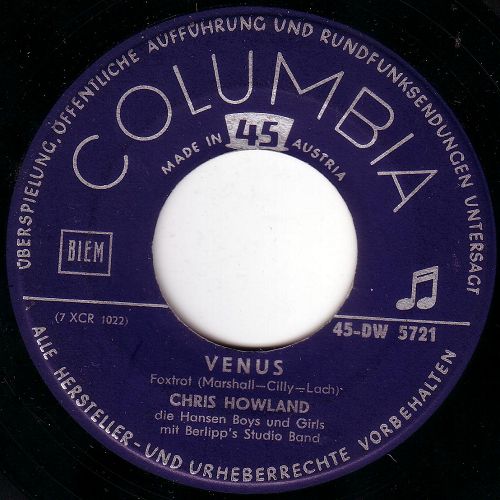 Frankie Avalon's VENUS ist bester schmuse Rock'n Roll. Deutsche Coverversionen kenne ich von Rainer Bertram, Peter Michael, Fips Fischer und Chris Howland. Letztere gefällt mir am besten. "Heinrich Pumpernickel" hat gleich noch den Megaseller des Mambo-Kings, Perez Prado, auf der B-Seite mitgecovert.