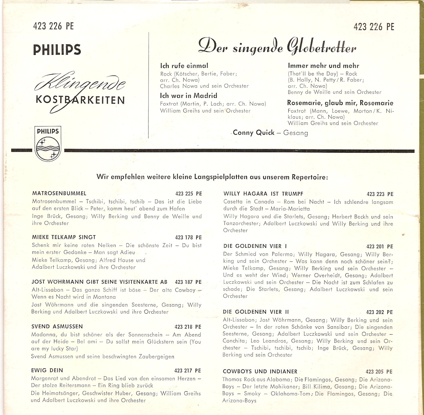 vielen Dank für die Information dass es zwei verschiedene Interpreten unter dem Namen Conny Quick gibt. Auch ich habe mich von dem Bericht in Memory in die irre führen lassen.