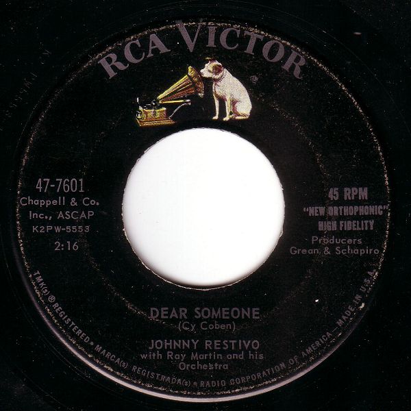 09 59....47-7601....JOHNNY RESTIVO..I Like Girls (K2PW 5556)/JOHNNY RESTIVO with Ray Martin and his Orchestra Dear Someone (K2PW 5553)