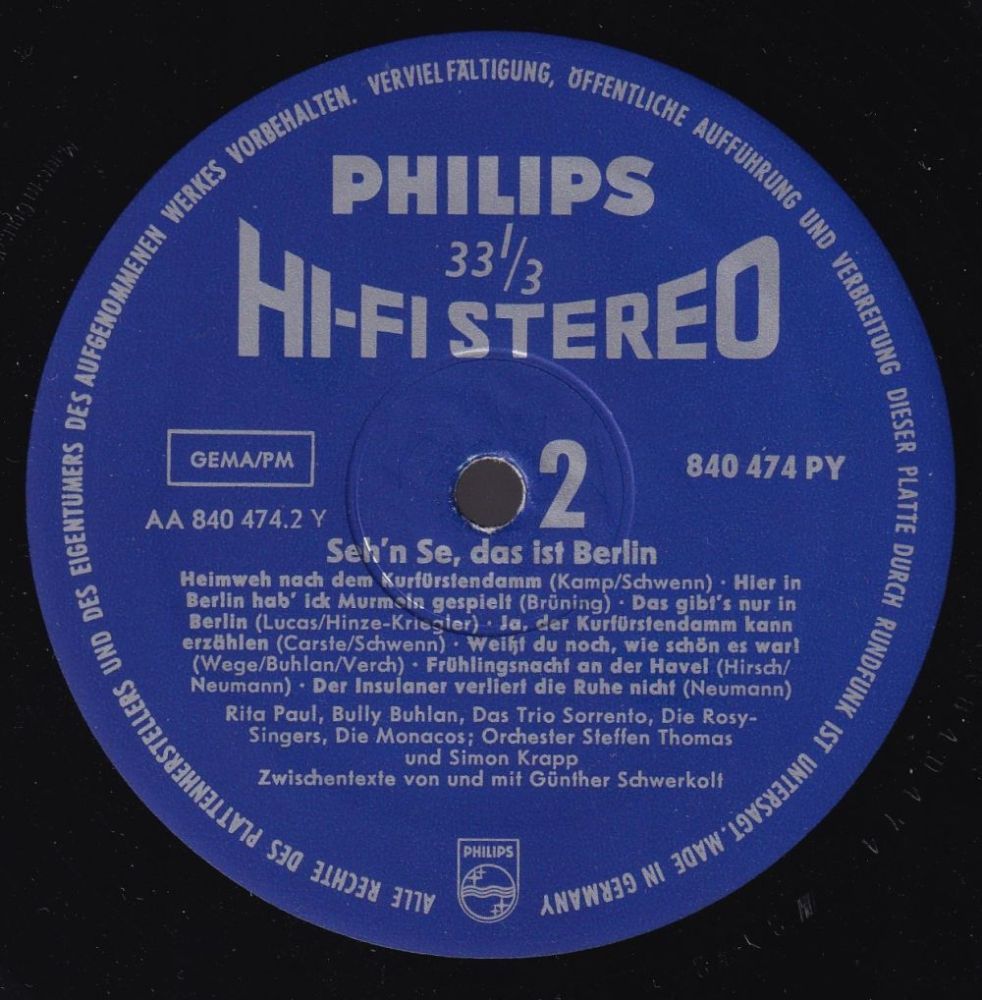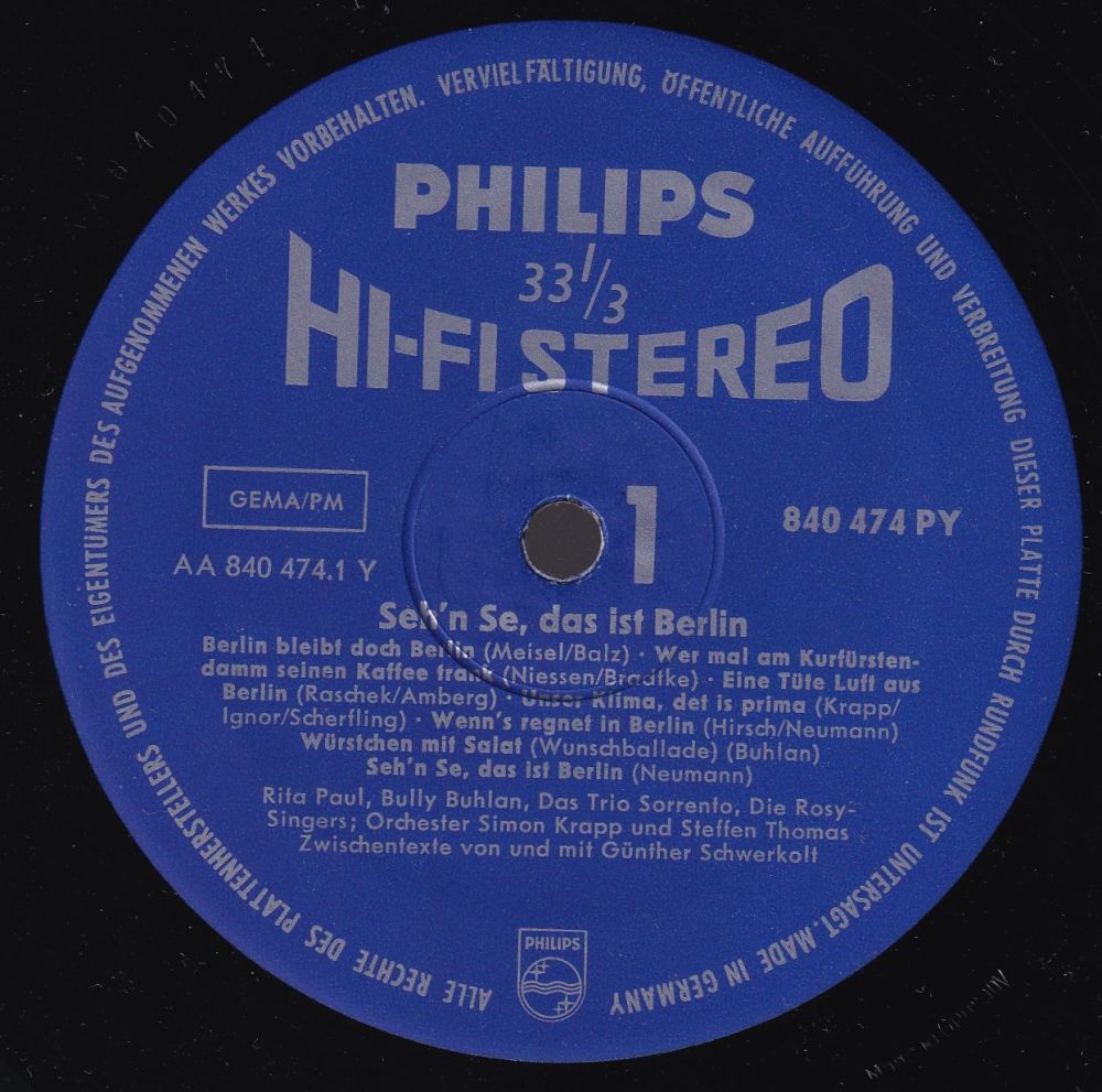 PHILIPS (D) 08 61....345 323 PF....Rita Paul Orchester Joe Dixie..Doller Mann/Wundervoll ('s wonderful) ?? 62....345 357 PF....Rita Paul m. Chor u. Orchesterbegleitung..La luna romantica/Rita Paul Orchester Joe Dixie..Canzonetta d'amore