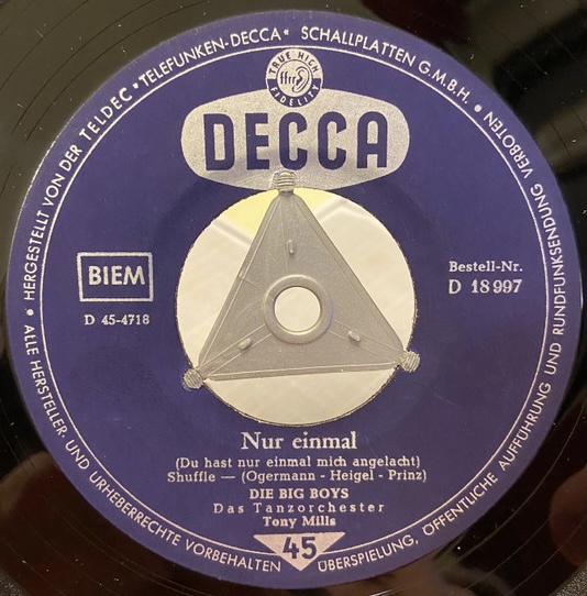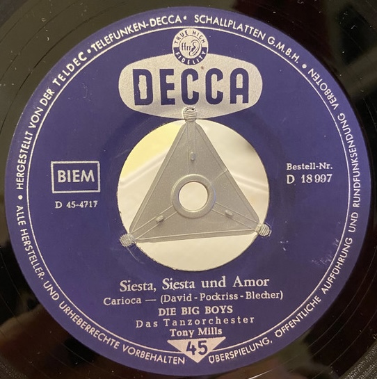 BIG BOYS, Die (ROBERT BENNET & HARRY PETERS), Gesang, 1959 Decca 18997 ("Siesta, Siesta Und Amor"/"Nur Einmal (Du Hast Nur Einmal Mich Angelacht)"-1959 & Das Tanzorchester TONY MILLS)