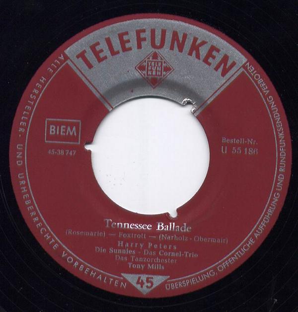 02 60....U 55 186....Harry Peters Die Sunnies - Das Cornel-Trio Das Tanzorchester Tony Mills..Als das Heimweh begann/Tennessee Ballade (Rosemarie)