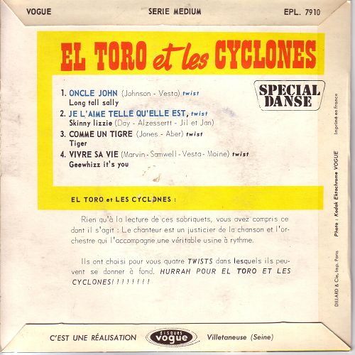 Durch meine "Long Tall Sally"-Suche für einen Beitrag von dieter bin ich in meiner Sammlung auf eine französische Gruppe gestossen, die gute R&R-Covers machten (schon mit "Twist" verbrämt). Aber die Franzosen haben auch wunderschöne Covers und ich glaube es lohnt sich die Erwähnung dieser Gruppe im Forum