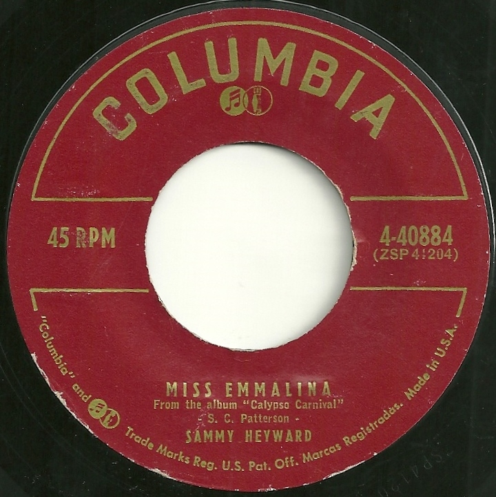 08 57….322 074 BF….The Calypso Carnival Featuring Sammy Heyward..Miss Emmalina/Union Street (COLUMBIA LP 1007)