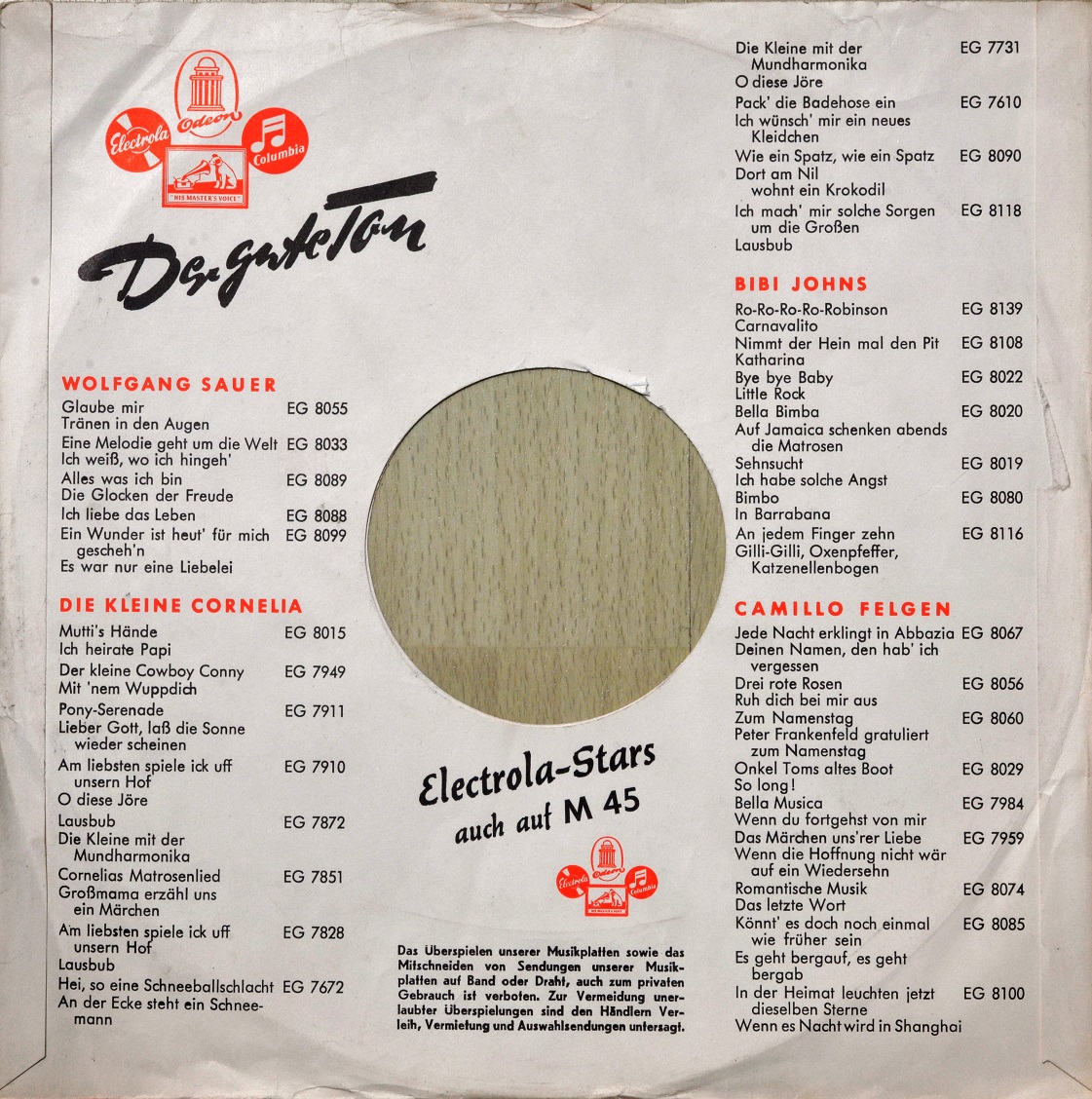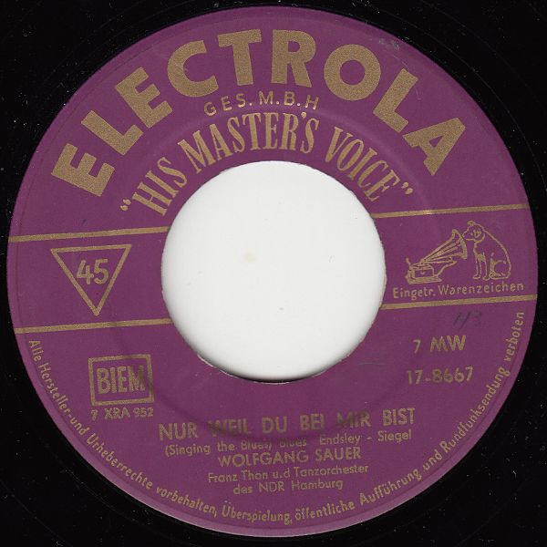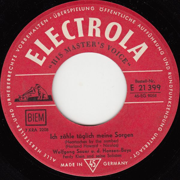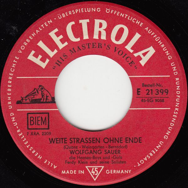 Wir Jungen wollten in den Fünfzigern die deutschen Schlager meist nicht, wobei wir den Begriff Cover-Version überhaupt nicht kannten. Wolfgang Sauer war für uns ein deutscher Schlagersänger, von den wir aus dem Radio, soweit ich mich erinnere, nur einen einzigen Titel kannten, nämlich "Tränen in den Augen". Dass dieser Titel aus den USA kam, war uns natürlich völlig unbekannt, für uns war es ein deutscher Schlager. Aus den vorgenannten Gründen wundert es mich daher sehr, dass gerade dieser Titel hier fehlt und das habe ich jetzt mit Hilfe des Netzes geändert.