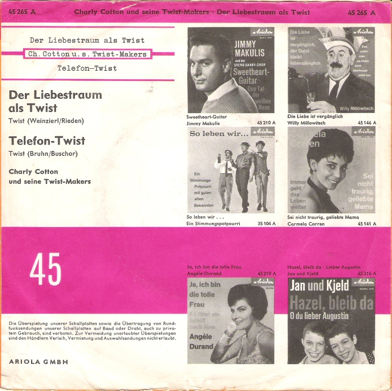 um deutsch gesungene Twistaufnahmen soll es hier gehen. Das könnte doch ein schönes Thema werden. Aus West und Ost und auch die deutsch singendenden international Artists könnten sich hier treffen. Ich fange mal mit einer meiner flottesten DDR-Twist-Aufnahmen an. Es singt Ruth Brandin ...