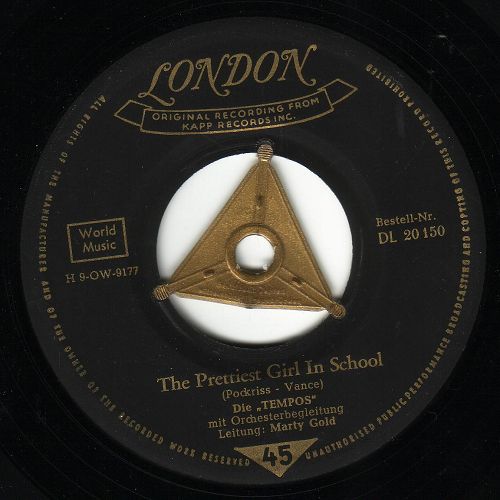 03 58....DL 20 150....Die „TEMPOS“ mit Orchesterbegleitung Leitung: Marty Gold..The Prettiest Girl In School/Never You Mind (KAPP 199)