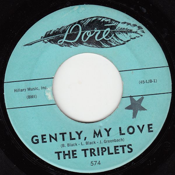 11 60....574....THE TRIPLETS..Gently, My Love (45-LJB-1)/Bagdad Beat (45-LJB-2) (