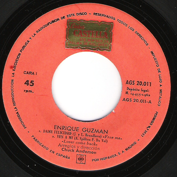 1962 verließ Guzmán die Teen Tops um eine noch erfolgreichere Solo-Karriere zu starten - er sang weiterhin US-Titel in spanischen Versionen: "Goody Goody" oder "100 Kilos de Barro" ("100 Pounds of Clay") - ob die Verdoppelung des Gewichts bei der Übersetzung des letzteren Titels Absicht war?