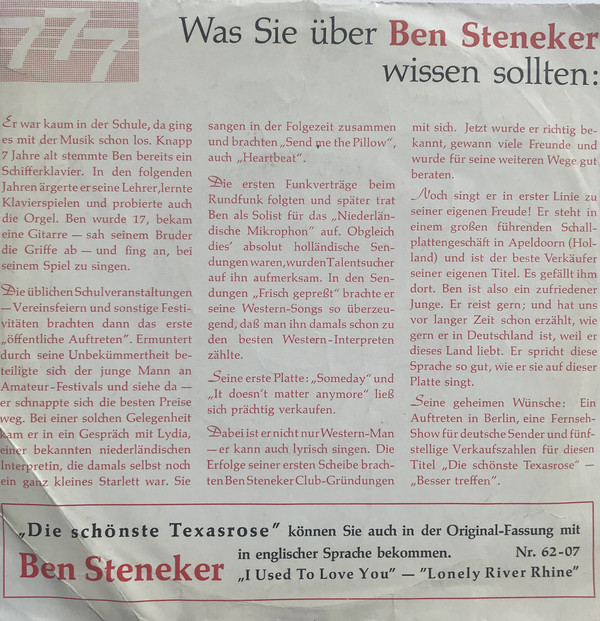 Seit 1959 änderte sich die Besetzung der Melody Strings, da BEN STENEKER eine Solo-Kariere bei CNR begann (siehe hier). Die Gitarristen Boy Kneefel und Joop Dullaart verließen ebenfalls die Gruppe und wurden durch Eddy den Dekker ersetzt. Gilly Barkey wechselte vom Kontrabass zur Gitarre und der weitere Neuzugang Eddy Lohstroh übernahm den Part des Bassgitarristen. Jetzt hatte Lydia nur mehr vier Begleitmusiker. Der fünfte war bei Studio-Aufnahmen fallweise Eddy Christiani mit seiner Gitarre.