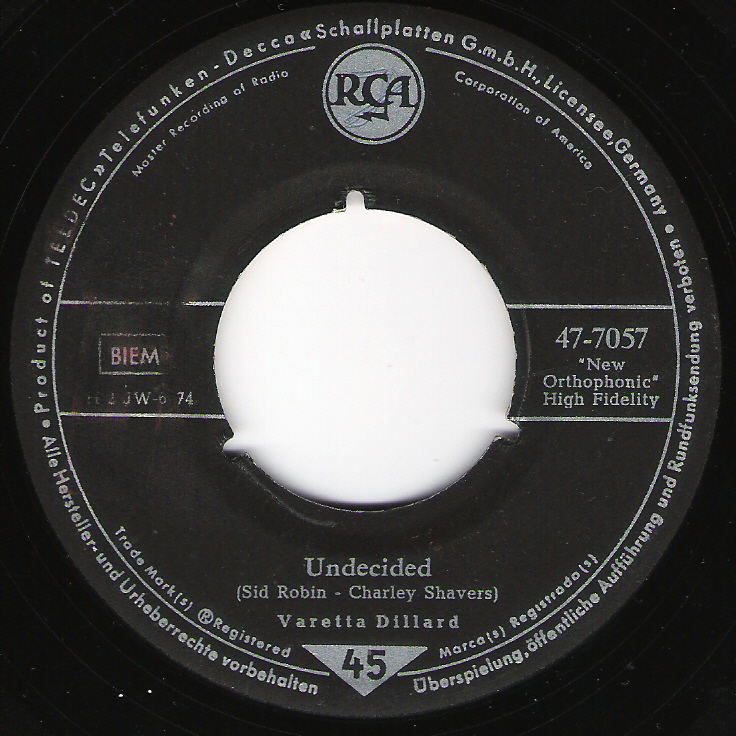 mindestens eine Single von Varetta Dillard wurde 1957/58 auch als deutsche RCA veröffentlicht;