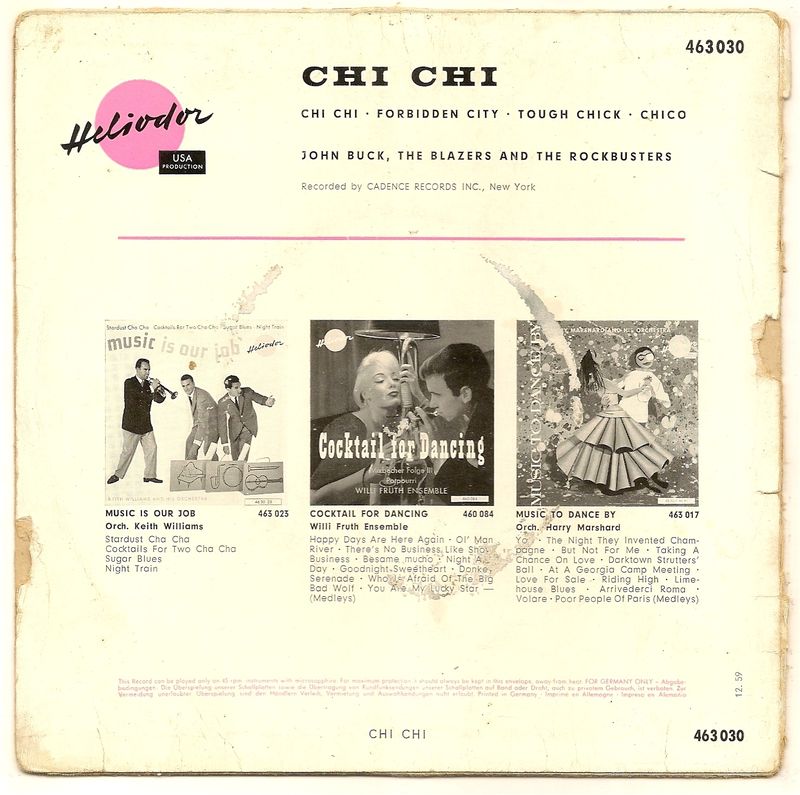 Vorzon wechselte dann zu WARNER BROS. das bei uns von der TELDEC vertrieben wurde. Der Name John Buck hatte mit "Chi Chi" bei uns so eingeschlagen, dass die DEUTSCHE GRAMMOPHON versuchte ihn weiter verwenden zu können, offenbar ist ihr das auch gelungen, da zwei von der Horst Wende Combo gespielte Titel als John Buck And The Chi Chi's veröffentlicht werden konnten.
