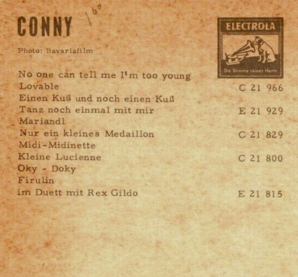 B-Seite singt Fred Bertelmann Anhänge an diesem Beitrag Dateiname: CONNY-EP - Wenn das … -A-.jpg Dateigröße: 153.03 KB Titel: Heruntergeladen: 43